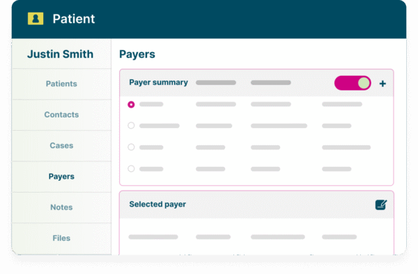 - Assign coverage to specific cases: When an insurance plan only applies to certain therapy episodes or diagnoses, you can associate that payer with the relevant case – so claims go to the right payer every time.
